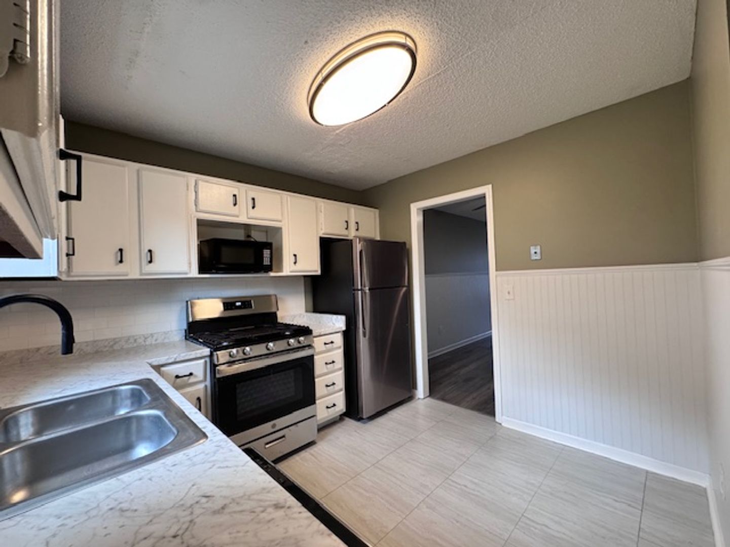 Step inside to a bright and inviting living space featuring fresh paint, and modern fixtures throughout. The spacious living room flows seamlessly into a cozy dining area and a well-appointed kitchen with ample cabinet space and brand-new stainless-steel appliances.