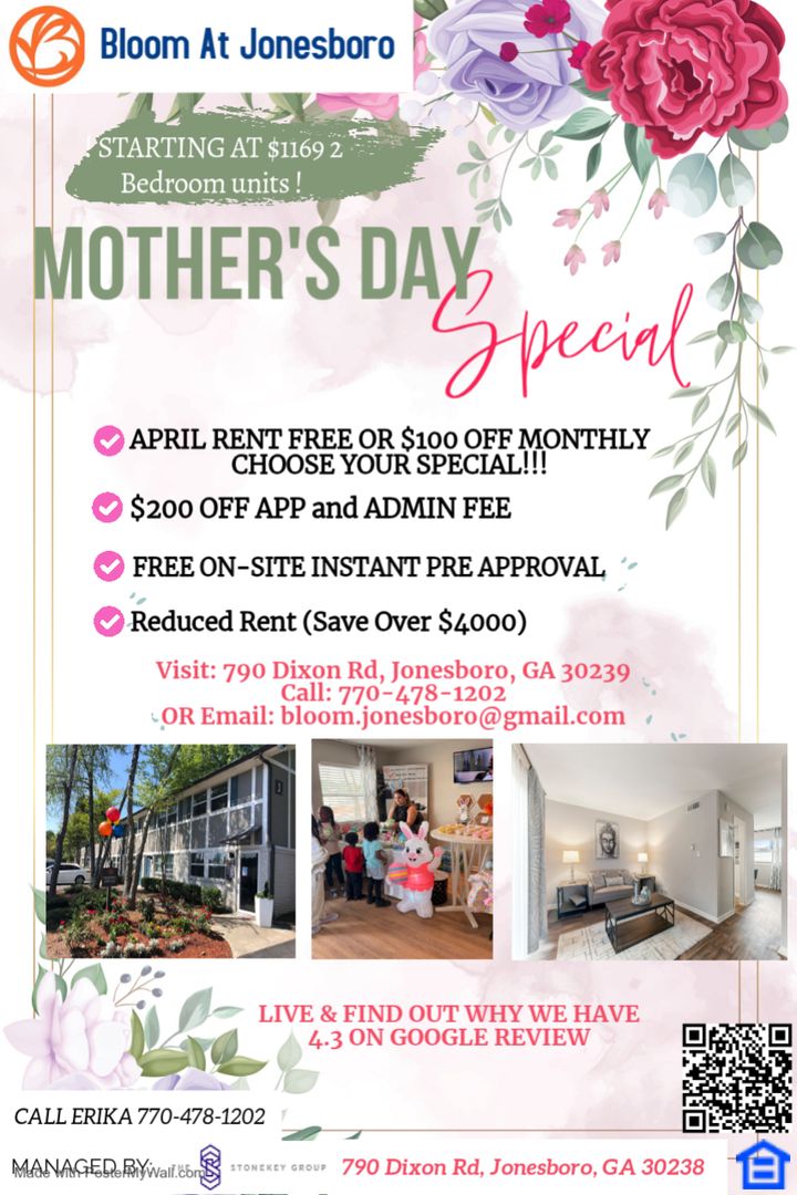 MOTHER’S DAY LEASE SPECIALS — FIND A HOME MOM WILL LOVE!