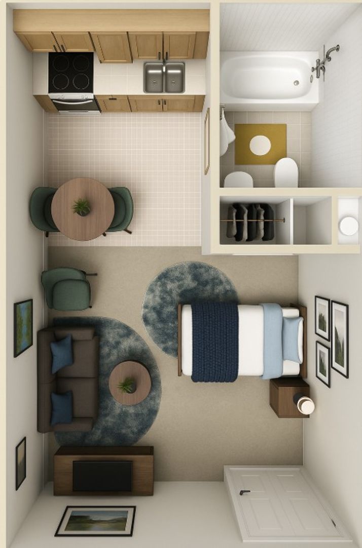 + Water- Sewer- Trash & Pest Control $70 Monthly in the studio.