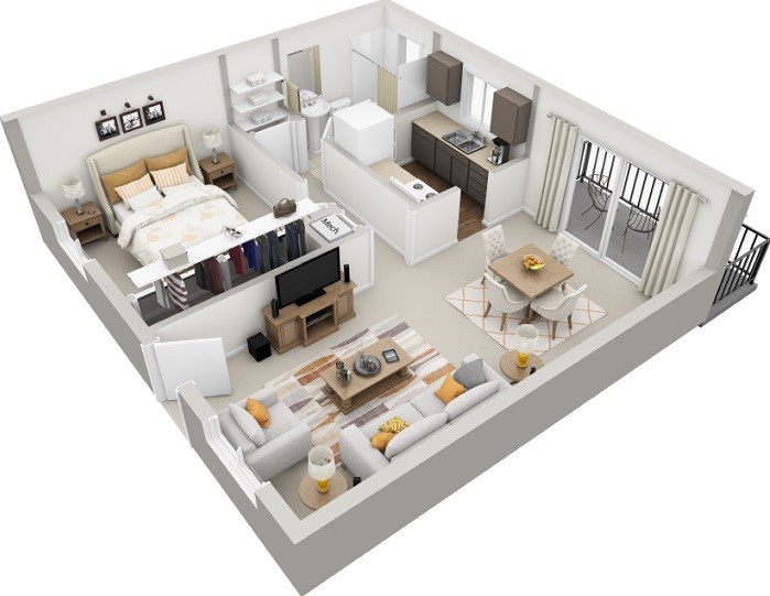 Bloom At Main Street offers COZY STUDIO APARTMENT and you have the option to include ALL UTILITIES!!! How is that for easy living? One payment takes care of everything! Our Studio features full size kitchen appliances, Modern light fixtures, and brushed nickel hardware.