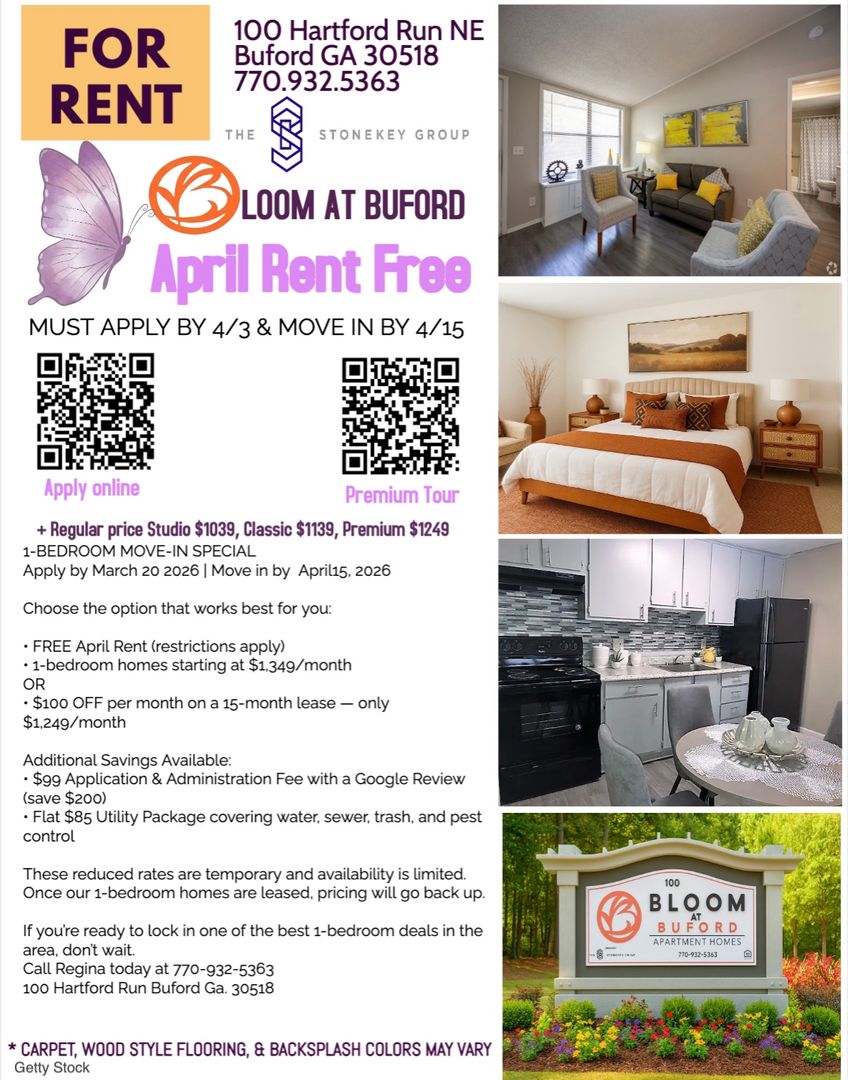 $100 OFF Rent – $1,039/month (on 15 month lease)