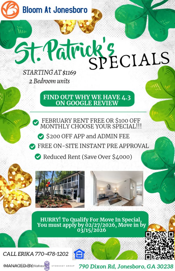 4 SPECIALS W/ MARCH RENT FREE OR $100 OFF MONTHLY + MORE!! (ONLY 2 UNITS AVAILABLE)